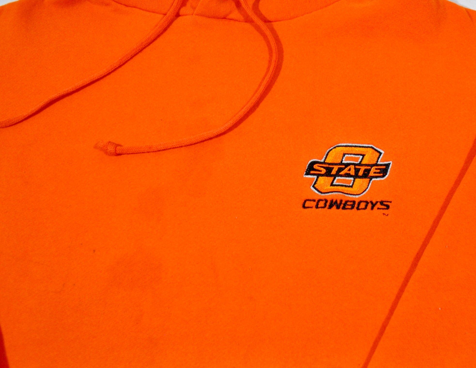 You are looking at a Vintage Oklahoma State Cowboys Sweatshirt Size Large. The sweatshirt is old school and does have some wear as seen in the pictures. The sweatshirt is still in decent condition. Measurements: pit to pit 23", back collar to bottom 27".