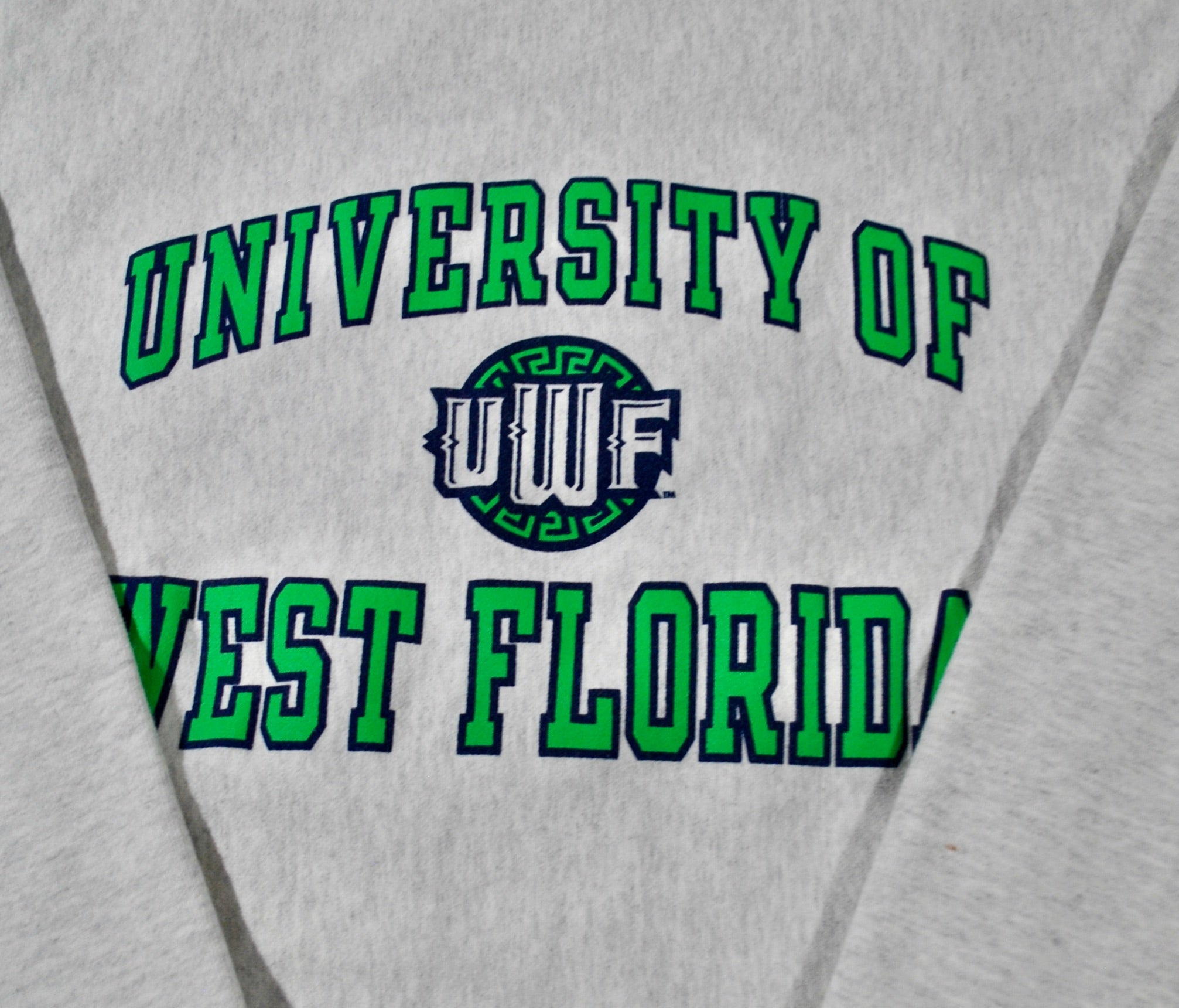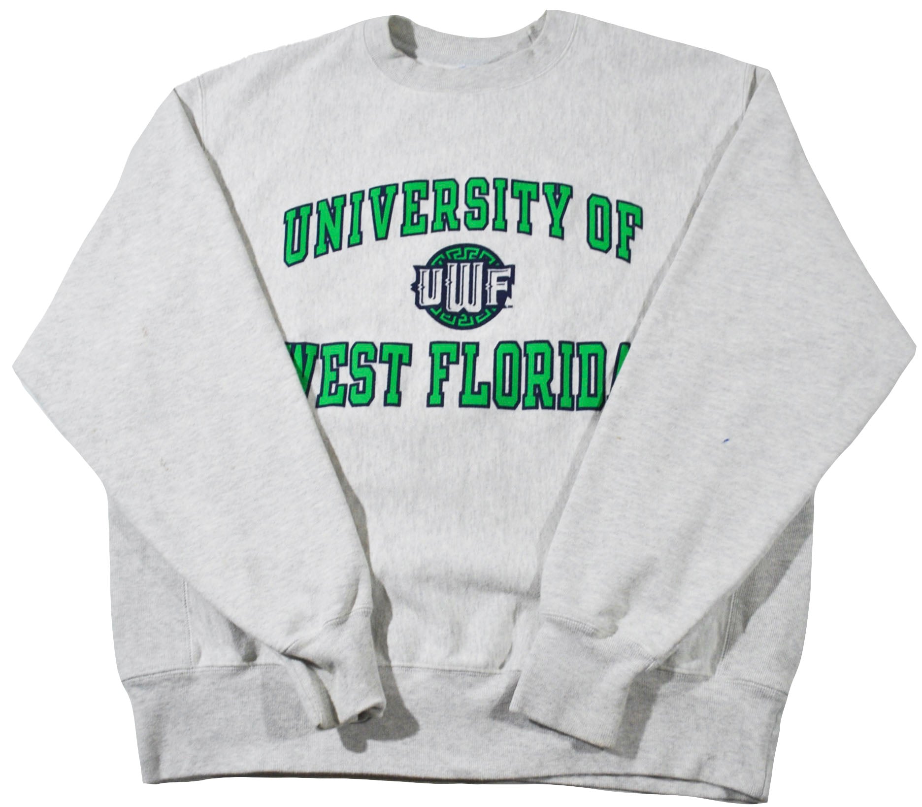 You are looking at a West Florida Argonaut Champion Brand Sweatshirt Size Large. The sweatshirt is old school and does have some wear as seen in the pictures. The sweatshirt is still in decent condition. Measurements: pit to pit 24", back collar to bottom 27".
