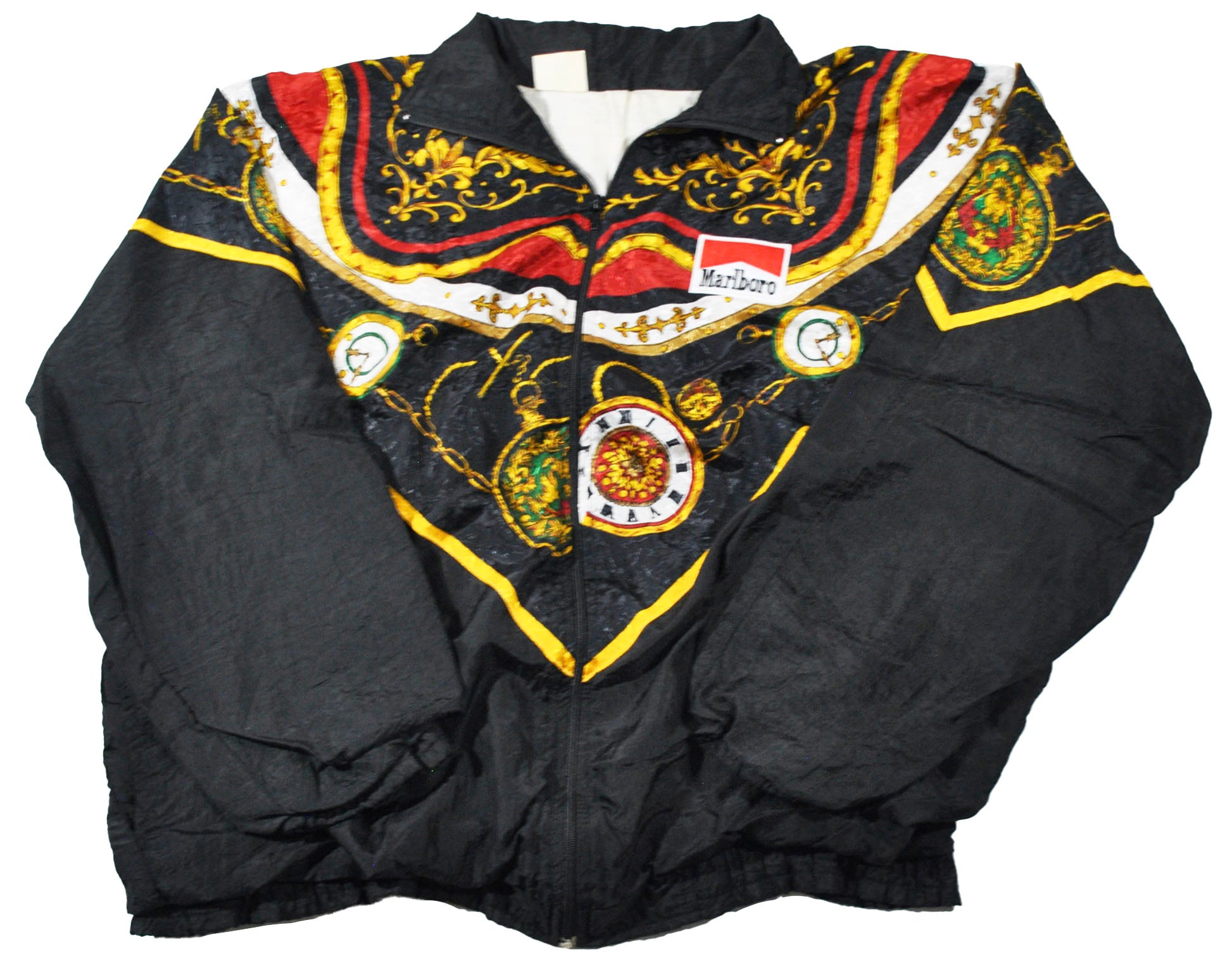 You are looking at a Vintage Marlboro Jacket Size Medium. The jacket is old school and does have some light wear as seen in the pictures. The jacket is still in good condition. Measurements: pit to pit 25.5", back collar to bottom 26.5".