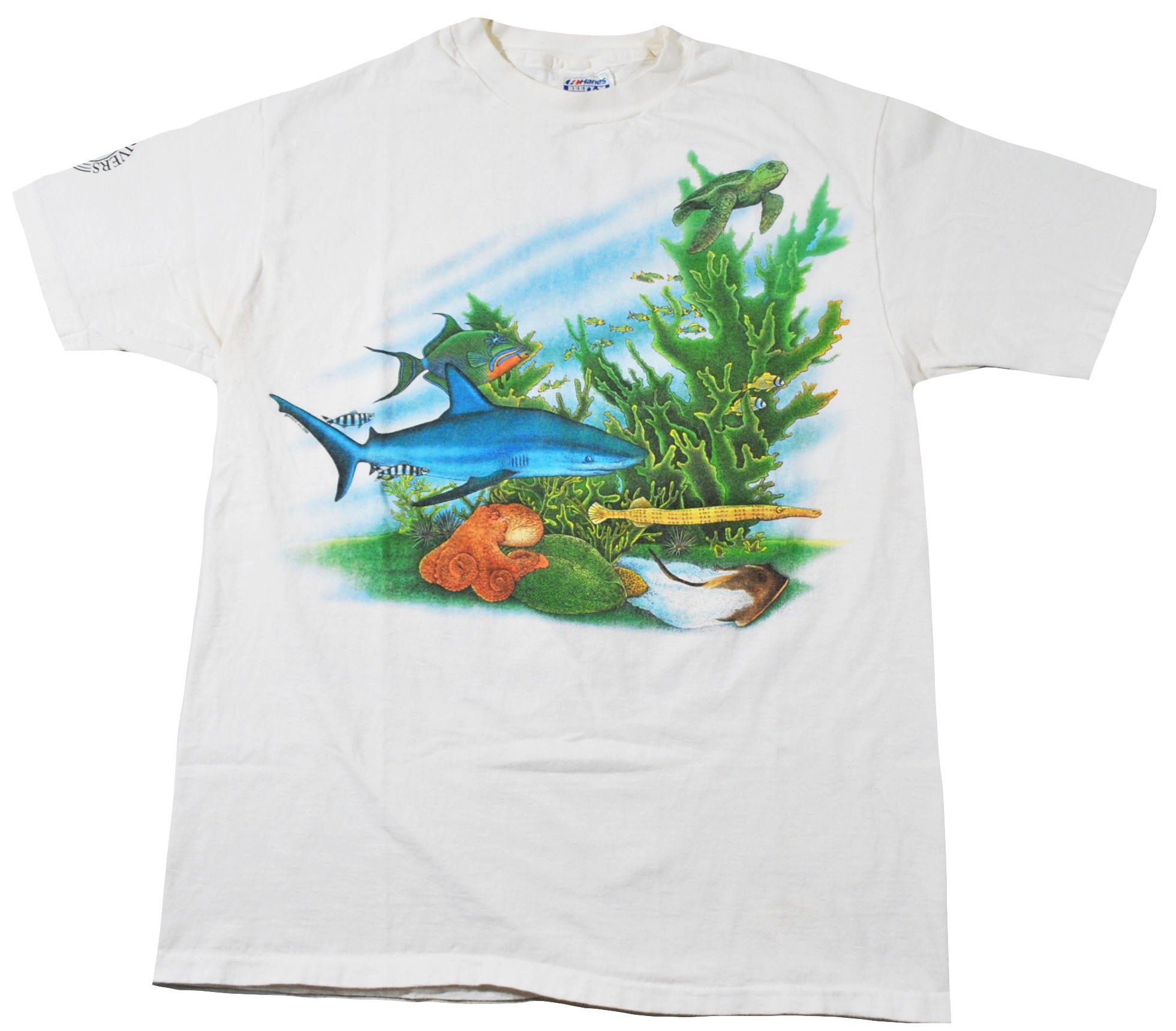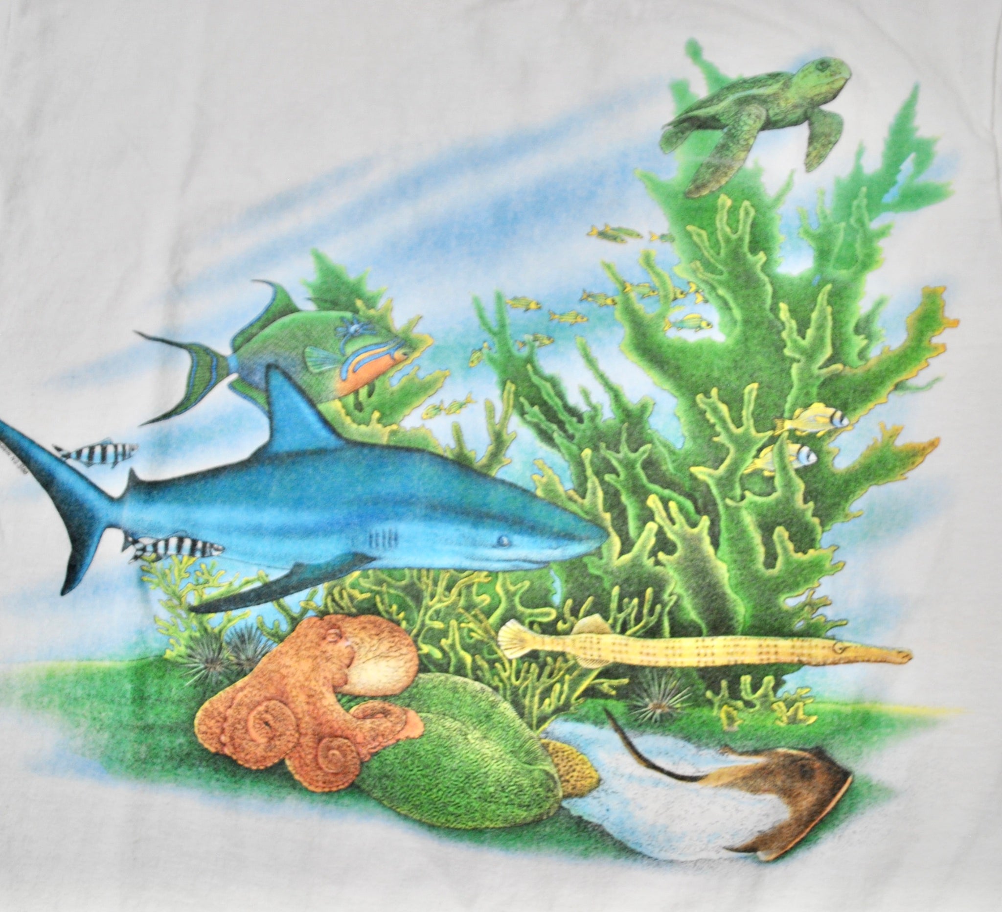 You are looking at a Vintage Sea Animals 1988 Shirt Size Large. The shirt is old school and does have some wear as seen in the pictures. The shirt is still in decent condition. Measurements: pit to pit 19", back collar to bottom 26.5".