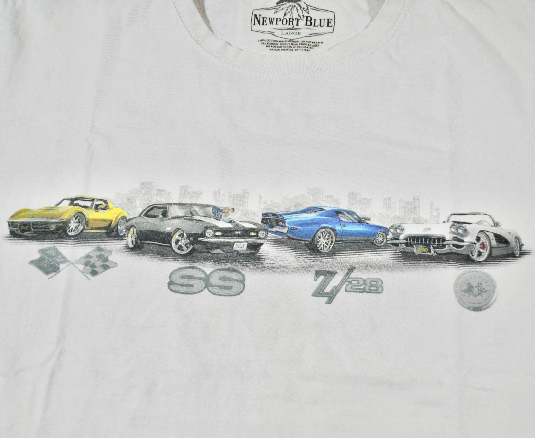 You are looking at a Camaro Z/28 SS Sports Car Shirt Size Large. The shirt is old school and does have some wear as seen in the pictures. The shirt is still in decent condition. Measurements: pit to pit 20", back collar to bottom 27.5".