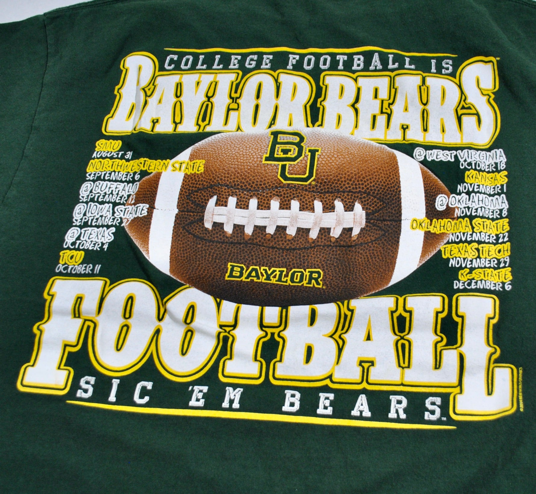 You are looking at a Baylor Bears 2014 Shirt Size Large. The shirt is old school and still in great condition. Measurements: pit to pit 20", back collar to bottom 25.5".