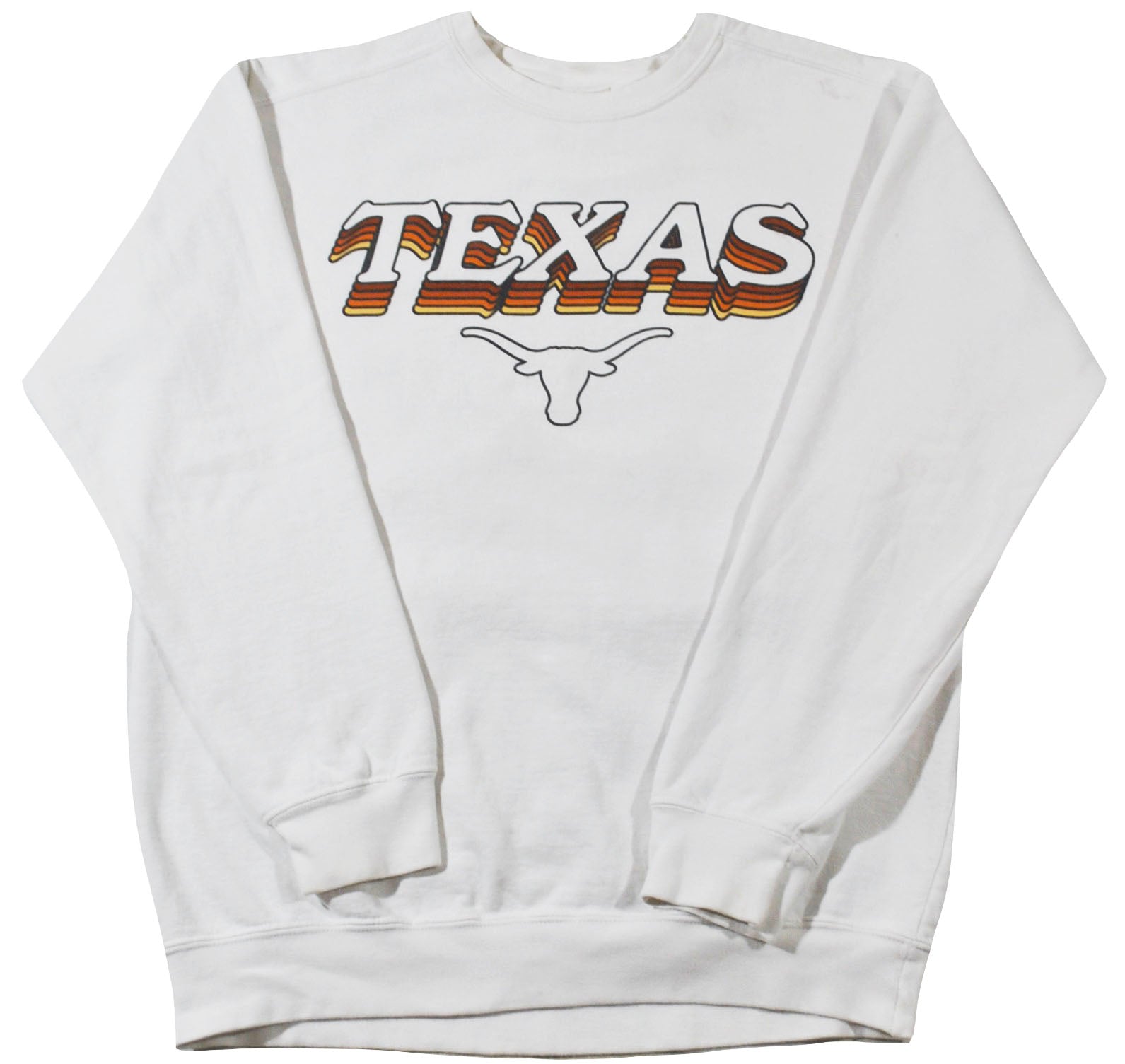 You are looking at a Texas Longhorns Sweatshirt Size Medium. The sweatshirt is old school and does have some wear as seen in the pictures. The sweatshirt is still in decent condition. Measurements: pit to pit 21", back collar to bottom 25".