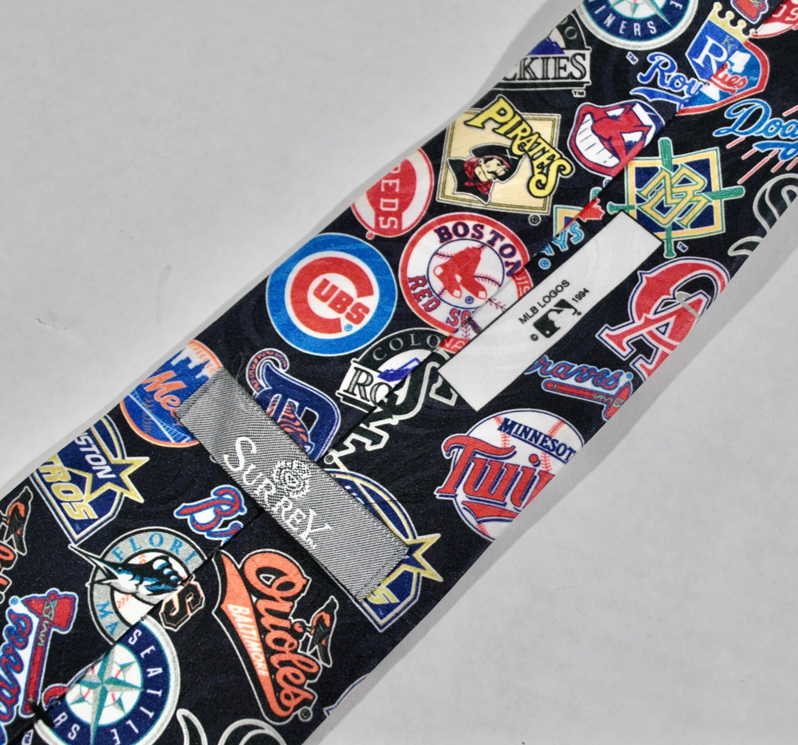 You are looking at a Vintage MLB 1994 Tie. The tie is old school and does have some wear as seen in the pictures. The tie is still in decent condition.