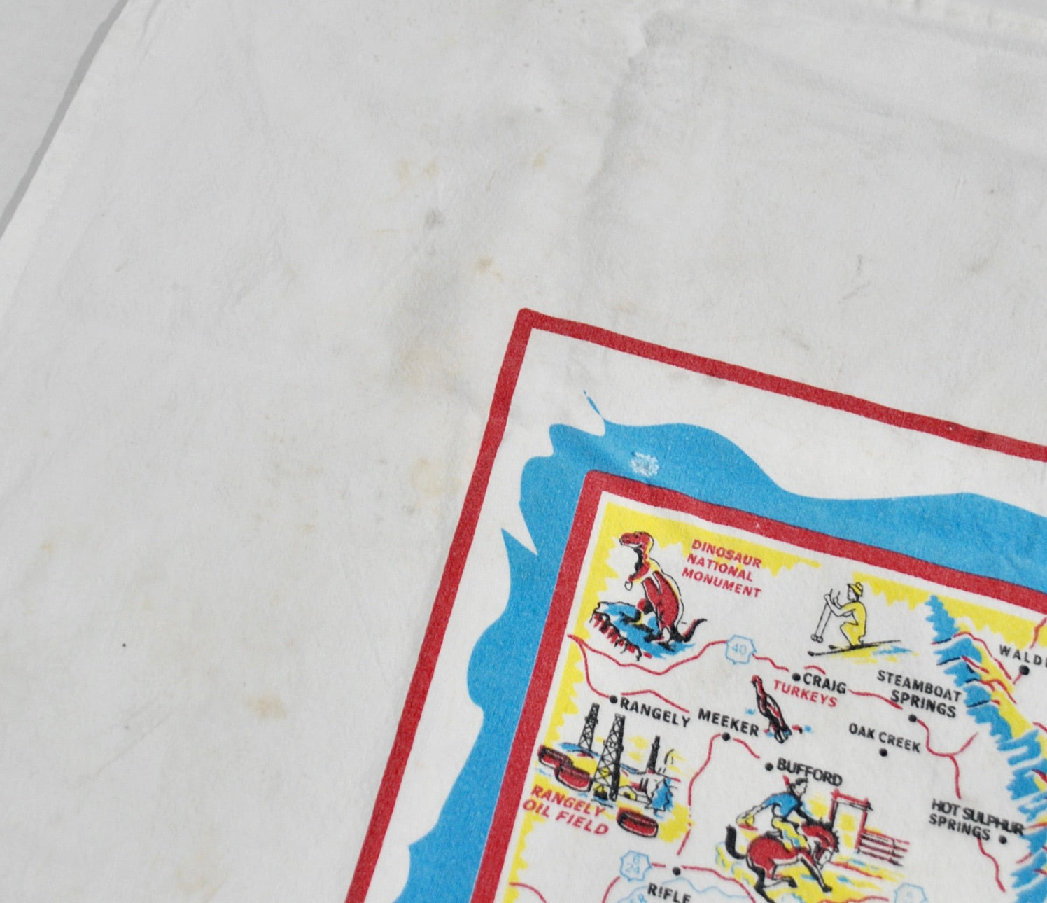 You are looking at a Vintage Colorado Bandana. The bandana is old school and does have some wear as seen in the pictures. The bandana is still in decent condition. The bandana is 27in by 27in.
